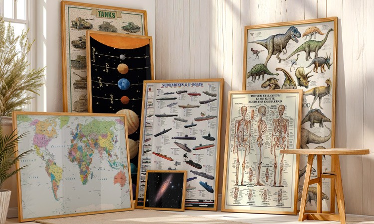 Учението би трябвало да е удоволствие, затова сме подготвили за вас и вашите деца научно-образователни плакати и картини за стена. Можете да изберете от следните тематики: човешко тяло, животни, динозаври, камъни и скали или периодична таблица с елементи. Купете образователни плакати за децата си още сега, за да имат по-добри резултати в училище.