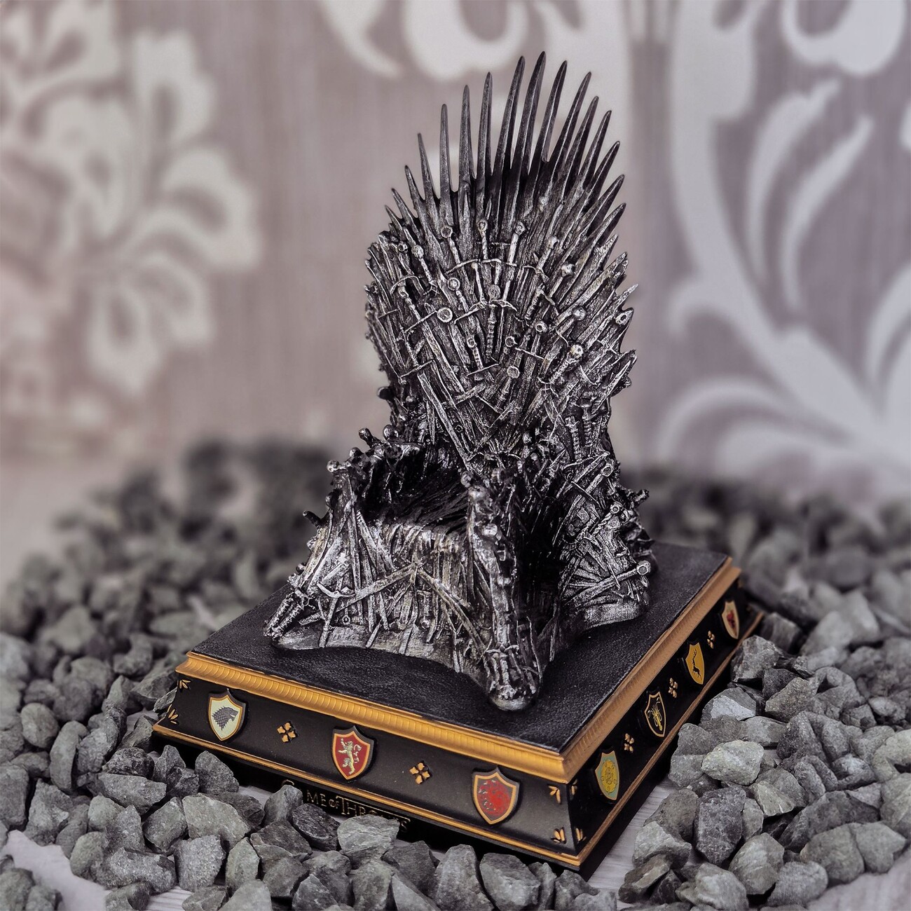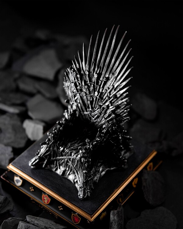 Оставете книгите си да почиват до самия Железен трон - символ на властта и съдбата във Вестерос! Тази ръчно рисувана и сложно изработена поставка за книги пренася епичната атмосфера на "Игра на тронове" директно на рафта ви с книги. Емблематичният трон, изкован от мечовете на паднали воини, е украсен със знаците на великите домове на Седемте кралства.