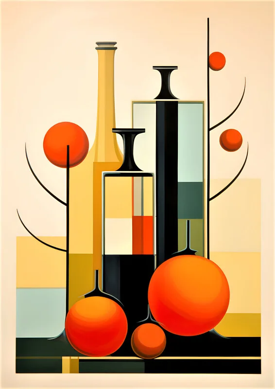 Картината върху платно Bauhaus Style Olive Oil Bottles Kitchen Wall Art