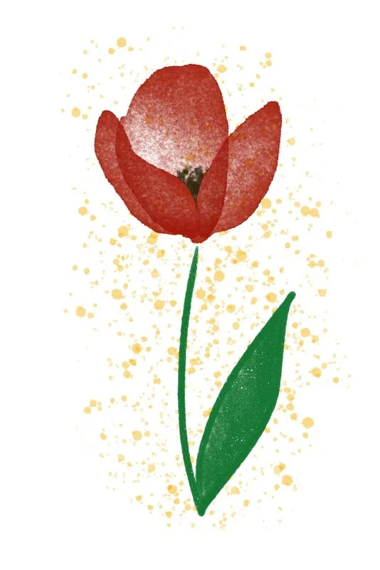 Лепенка Flor roja estilo acuarela con manchas de pintura