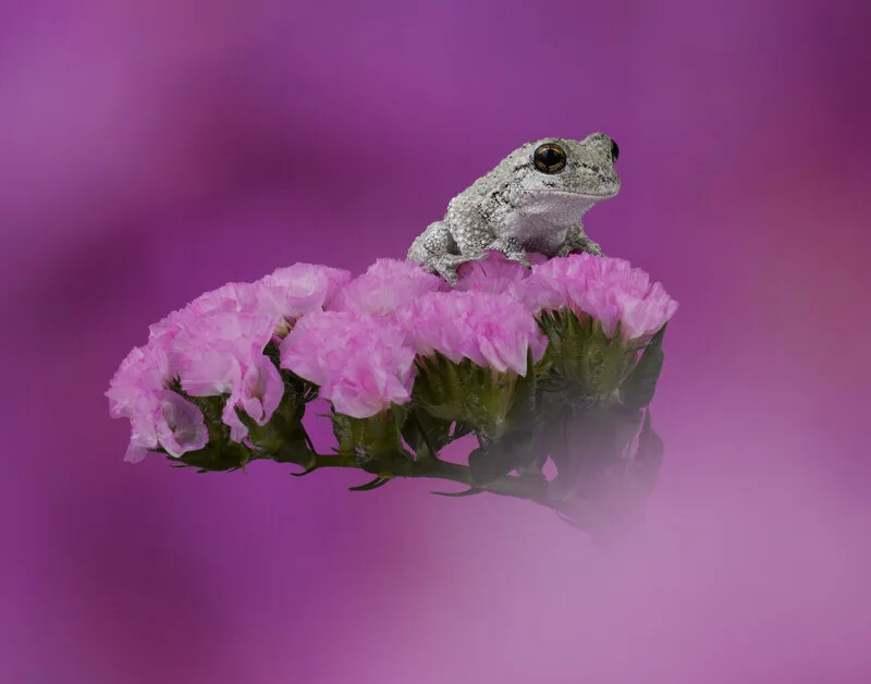 Картината върху платно Grays tree frog on pink flower