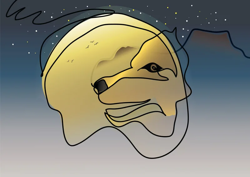 Лепенка Minimalist One-Line Art Wolf and Moon Night Scene