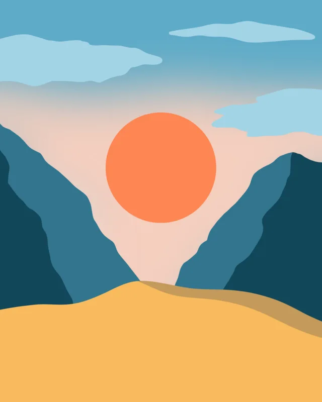 Плакат Oranžová záře mezi horami