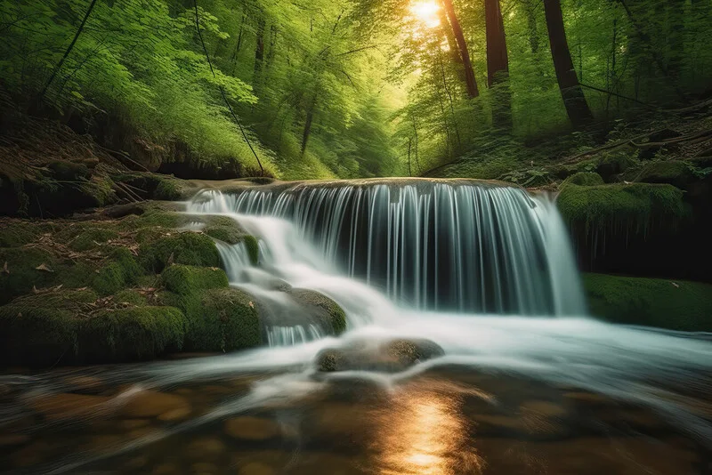 Картината върху платно Waterfall in a green forest