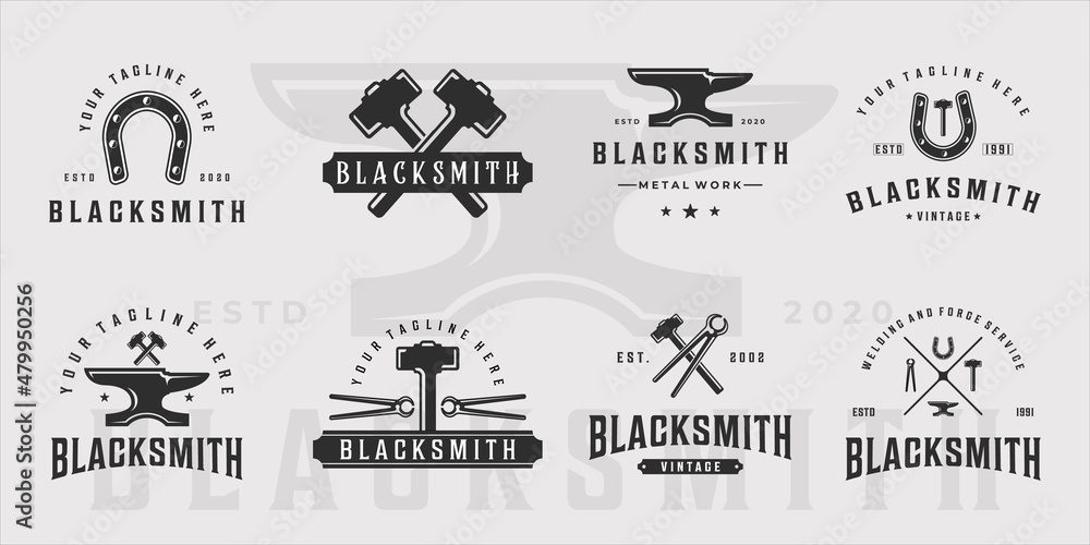 Картината върху платно set of blacksmith anvil logo vintage vector template icon graphic design