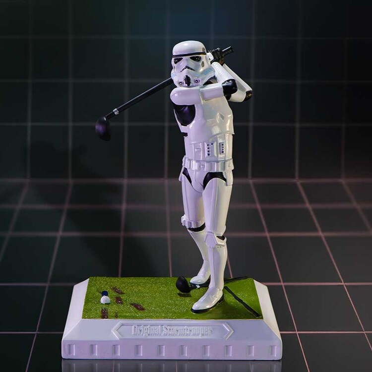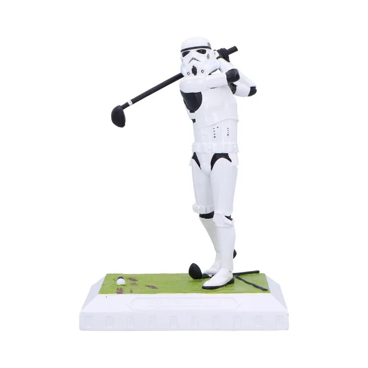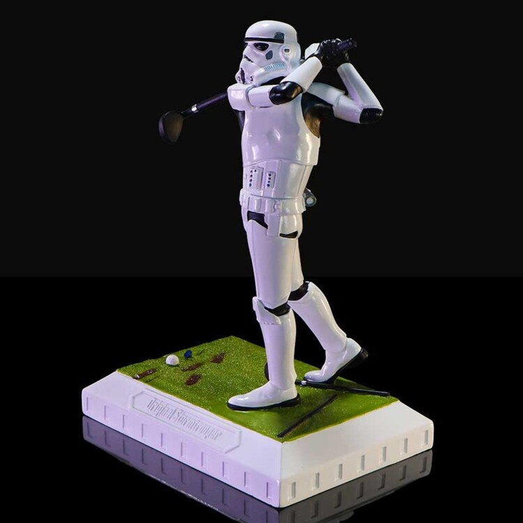 Спортна закачка в служба на Империята: официална статуя Stormtrooper, ръчно боядисана, улавя голф замаха с фини детайли и гладък финиш. Идеална за фенове на Star Wars и голфа.
